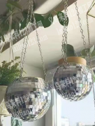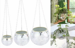 创新玻璃镜面球形花盆订单,吊篮订单,如图,悬挂反光镜面球形吊篮