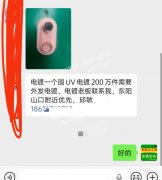 200万电镀外发加工,公司单子,电镀一个圈UV电镀200万件需要外发电镀,电镀老板联系我,东阳山口附近优先,邱敏